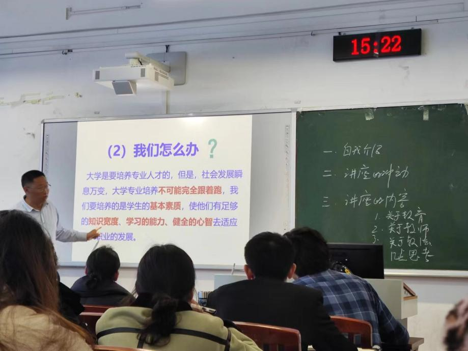 12月13日下午14:10,公司邀请硕士生导师毛华平教授在明辨楼1栋304教室举办了“三尺讲台 追求卓越”的专题讲座。公司2023级小学教育、学科教学(物理)全体研究生参加,讲座由副经理蒋文峰主持。