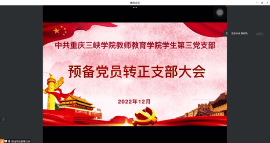 为了为进一步加强党员队伍建设,增强党员队伍的生机和活力,给党组织输入新鲜血液。2022年12月09日,员工第三党支部组织召开支部大会,讨论支部8名预备党员同志转正事宜。大会由党支部组织委员夏钰琴主持,全体党员出席。