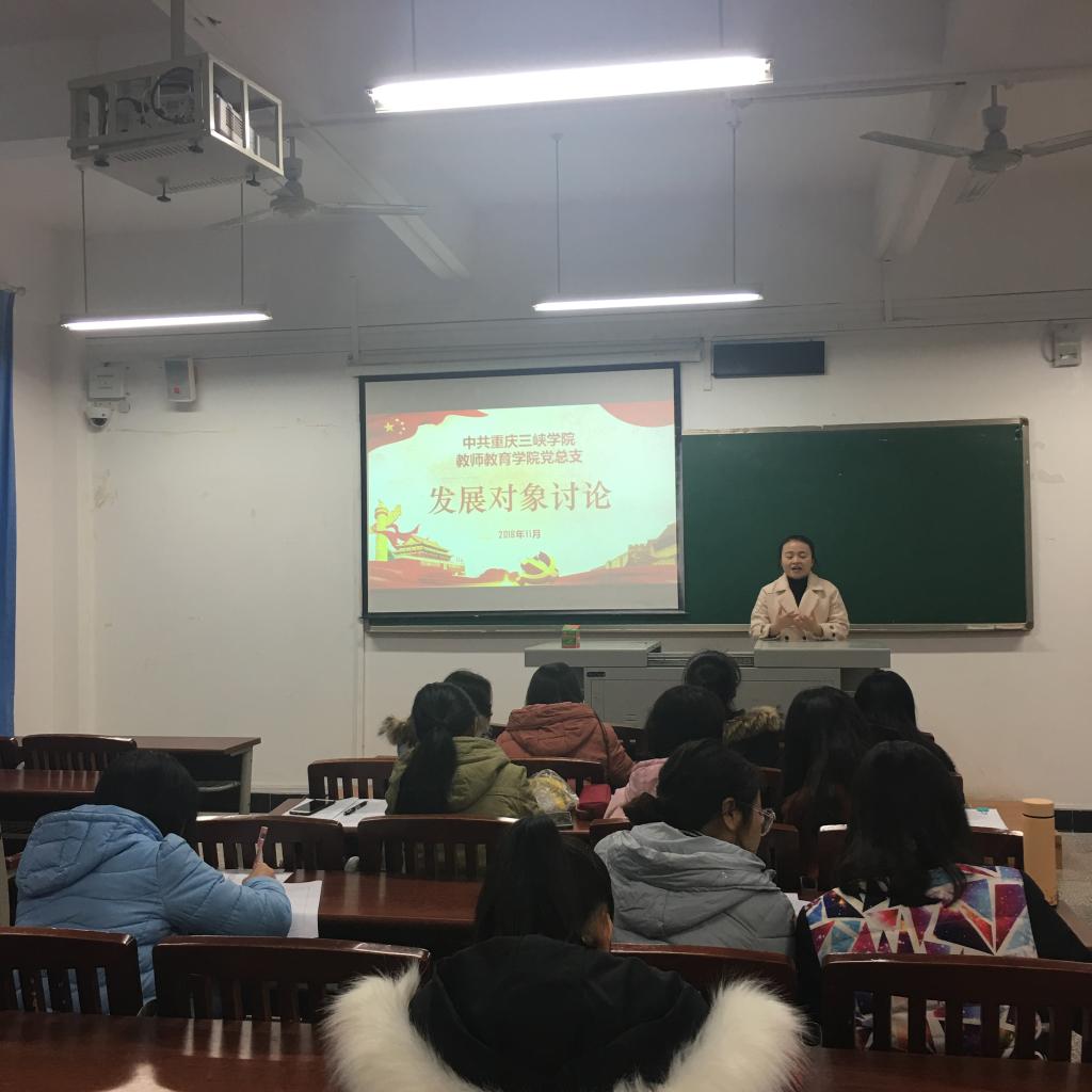 2018年11月26日晚7时,太阳成tyc7111cc员工党支部在明辨楼1栋308教室召开了第3期发展对象讨论会议。本次会议将积极分子分共为3个小组,就“为什么入党”、“入党条件是什么”、“如何鉴定信念,加强党性修养”等问题进行了激烈的讨论,后由各小组代表上台分享讨论结果。