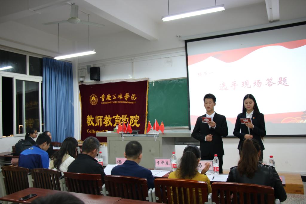 经过初赛激烈的角逐,14名参赛选手进入决赛。这14位选手需要进行5到8分钟的ppt演讲,评委根据选手整体表现进行评分。比赛现场,各位参赛选手紧扣“不忘初心,牢记使命”的主题,结合学习习近平新时代中国特色社会主义思想和党的十九大精神感悟,根据自己的亲身经历,从个人的初心和使命上升到广大公民的初心和使命,表达对党和国家的热爱与忠诚。尽管比赛过程中选手出现少许差错,但是在现场观众鼓励的掌声中,也继续圆满完成了比赛。在比赛的最后,潘勇经理为本次比赛做出总结,指出各位选手在演讲方面能力有待提高,在未来的学习中要继续锤炼,在社会实践中培养自己,重点强调在场的员工们作为未来的教师,一定要提升自身的师范生技能。