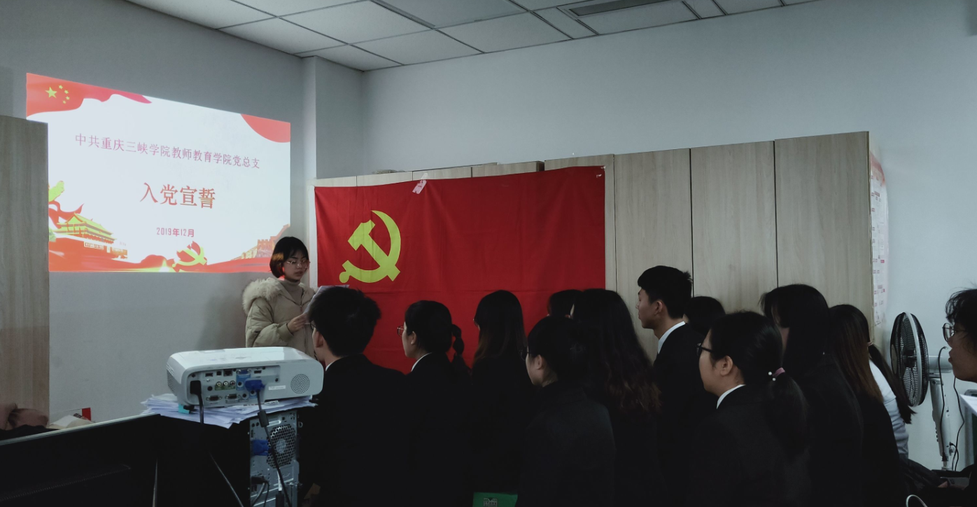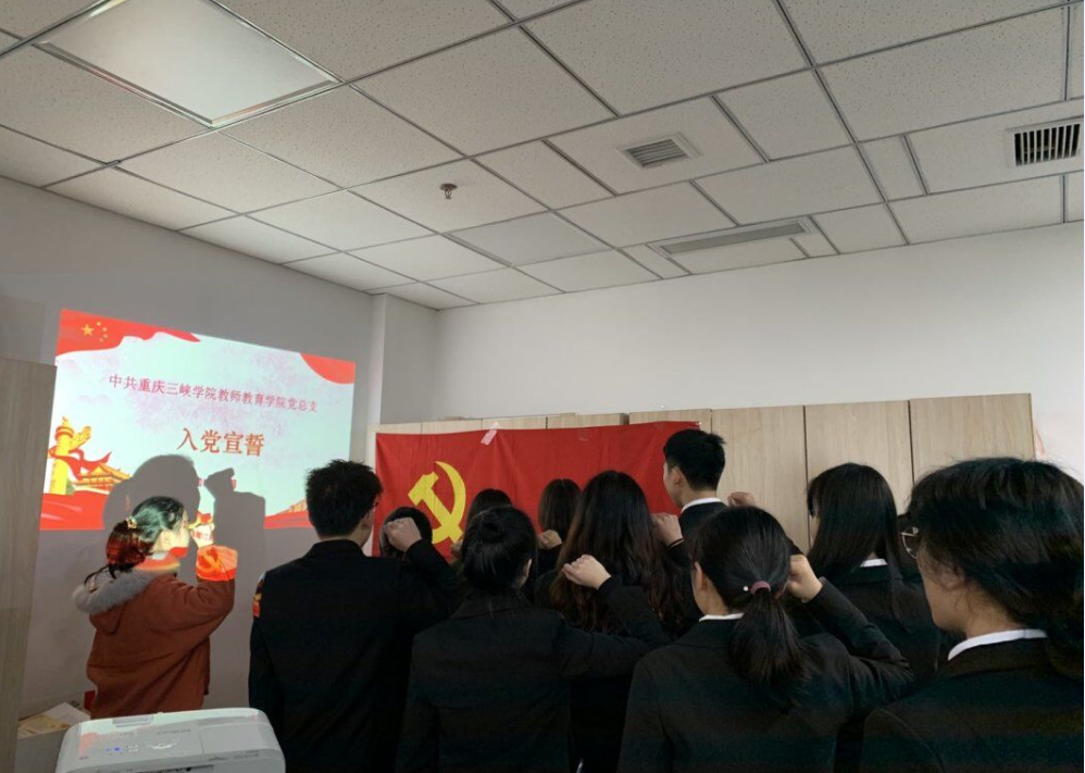 宣誓仪式由唐泓莉同志主持。仪式在庄严雄壮的《国际歌》中拉开帷幕,主持人首先宣读了新党员名单,再对各位优秀学子加入到中国共产党表示热烈的祝贺,并强调各位预备党员在预备期要端正入党动机,牢记全心全意为人民服务的宗旨,在生活与工作中努力学习,勤奋刻苦,提高自身的道德素质与文化修养,发挥先锋模范作用。随后,预备党员代表发言,在他们的发言中都提到专业知识的重要性,要利用所学的科学文化知识为人民服务,在成为正式党员的路上还有很长的路要走很多的精神要领会时刻都不能放松自己随后,宣誓仪式开始,23名预备党员起立,面向鲜艳的党旗,在领誓员带领下,大家列队整齐,举起右手,在党旗下庄严宣誓。最后,大会在庄严的《国歌》声中圆满结束。