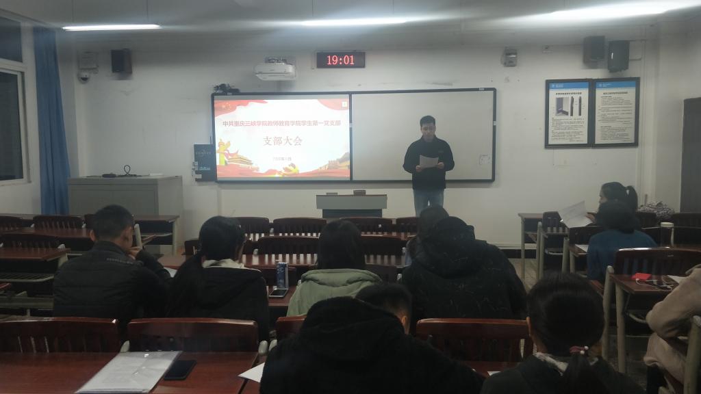 2019年1125日晚19点,太阳成tyc7111cc员工第一党支部于明辨楼1507召开了吸收预备党员大会,参加此次大会的有员工第一党支部全体党员、群众代表、七位发展对象及他们的入党介绍人。