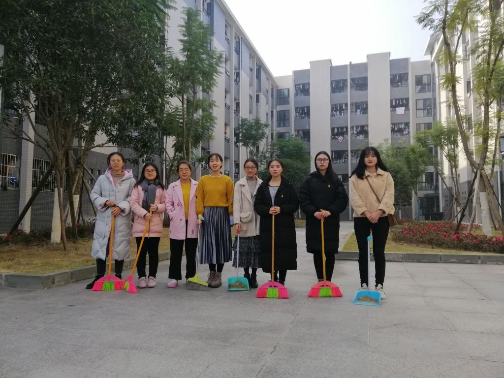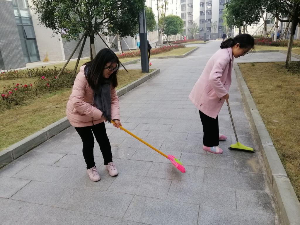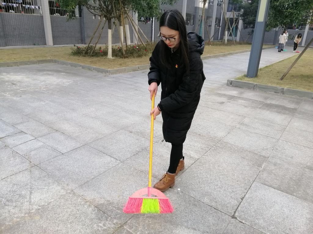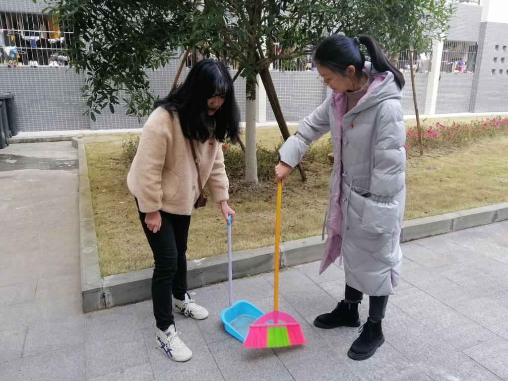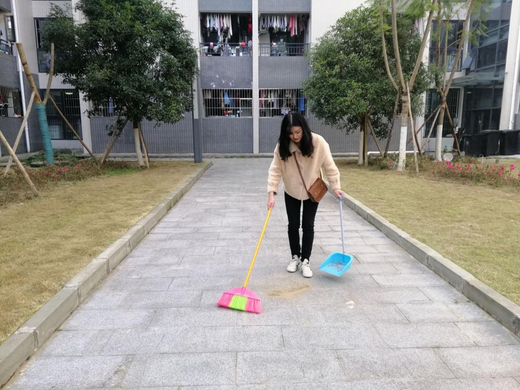 略微寒冷的天气并没有影响党员们满腔的热情,大家相约蓝雾苑1舍外,就宿舍外面的空地开展了活动。党员们拿着扫帚和铁锹,认真拾捡和清理垃圾。