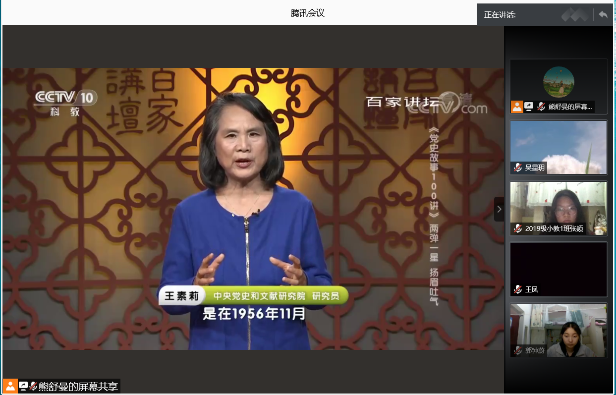 在视频中,中央党史和文献研究院研究员王素莉讲述了“两弹一星”的先进事迹,让我们了解到“两弹一星”的发展历程,感受到“两弹”元勋负重创新、顽强拼搏的精神。