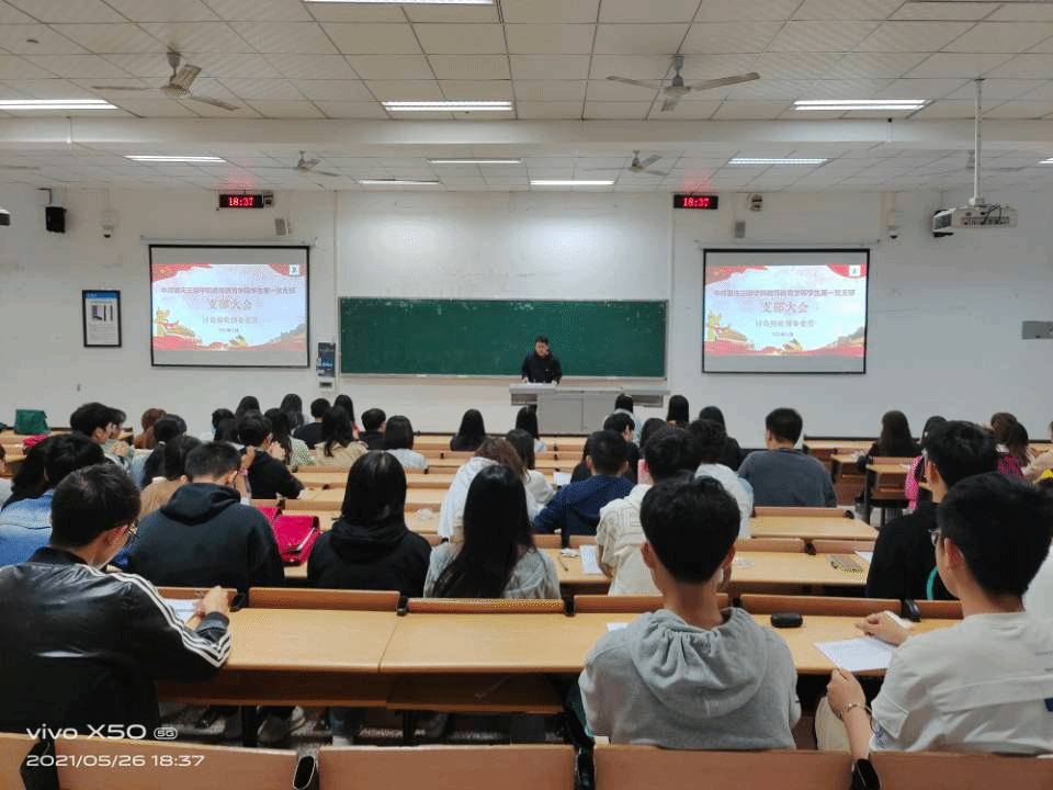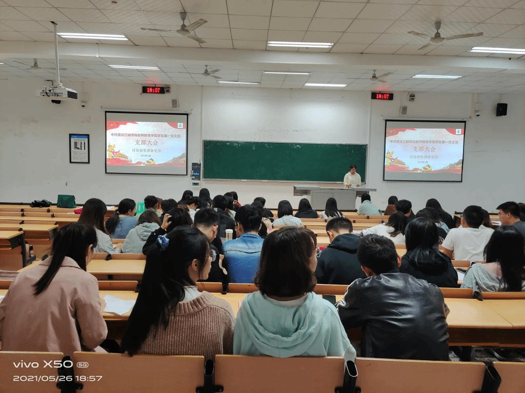 公司员工第一党支部于2021年5月26日19:30在明辨楼2栋103教室召开接受预备党员决议支部大会,对宋林滔等20名发展对象接收为预备党员进行讨论和表决,本次大会由支部书记高曼主持。