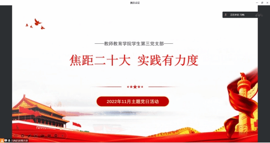 2022年11月10日,员工第三党支部开展了“焦距二十大 实践有力度”主题党日活动。会议由支部书记冯梅老师主持,全体党员参加。