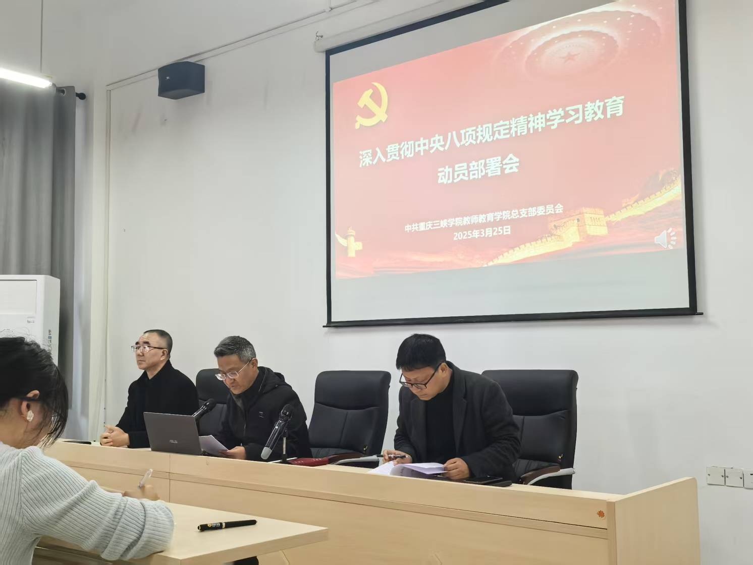 3月27日下午,公司党总支在博学楼3栋138会议室召开了深入贯彻中央八项规定精神学习教育部署会。党总支副书记、经理潘勇主持会议并讲话,各系、室、中心主任,全体党员参加会议。