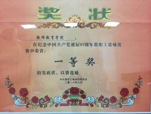 公司在纪念中国共产党诞辰97周年教职工歌咏比赛中荣获一等奖