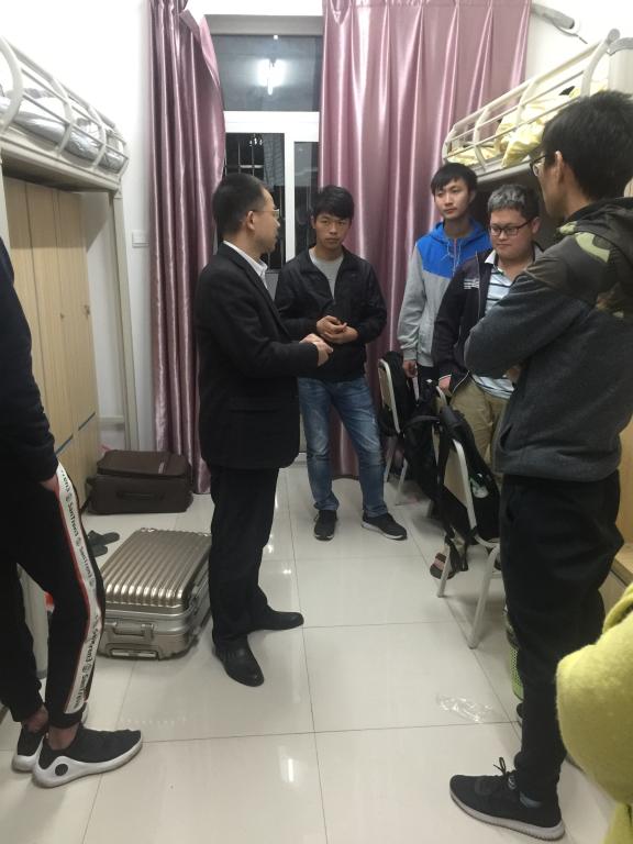 为了进一步了解同学们的宿舍生活情况,同时为了提高同学们的安全意识,4月16日晚,公司党总支副书记李中春与各位辅导员来到员工宿舍,查看宿舍情况。