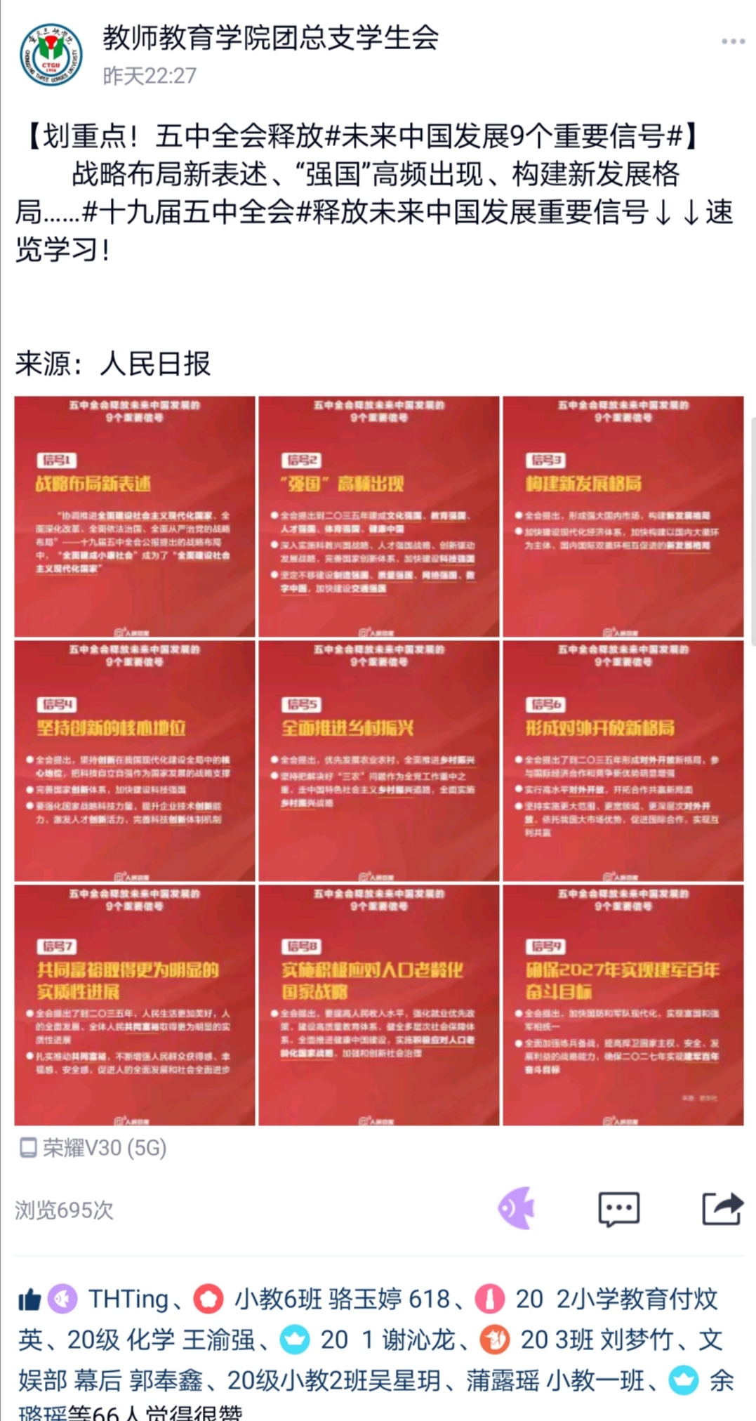 为深入贯彻学习落实党的十九届五中全会精神学习习近平总书记在全会上的重要讲话,根据团中央《关于认真学习宣传贯彻党的十九届五中全会精神的通知》部署安排11月中旬,太阳成tyc7111cc团总支积极动员全院同学学习宣传贯彻党的十九届五中全会相关精神