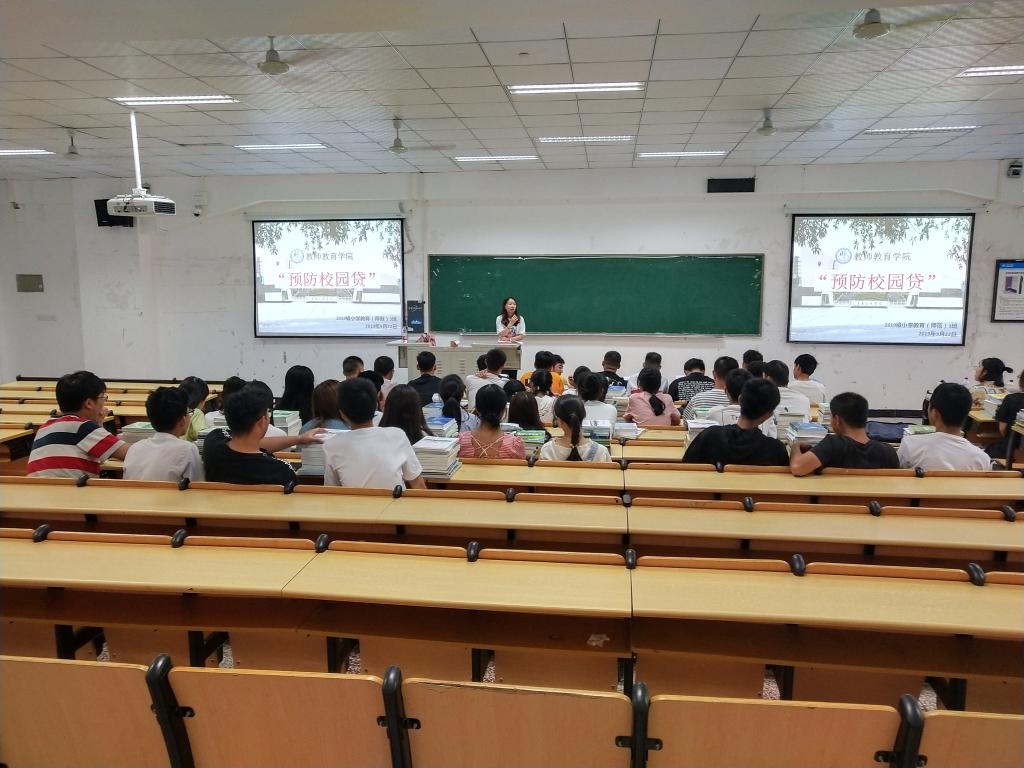 为了使员工认识“校园贷”,了解“校园贷”,树立理性消费观念和正确的价值观、人生观。9月22日下午16:00,太阳成tyc7111cc辅导员邓峥嵘组织2019级员工分班开展了“预防校园贷”主题班会。