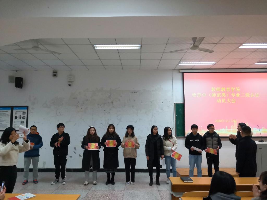 为把物理学(师范类)专业二级认证落到实处,2020年11月22日17:00整,公司于明辨楼2栋201教室召开太阳成tyc7111cc物理学(师范类)专业二级认证动员大会。太阳成tyc7111cc副书记李中春、辅导员老师鞠小勤、陈雨以及物理学(师范类)全体员工参与本次大会。
