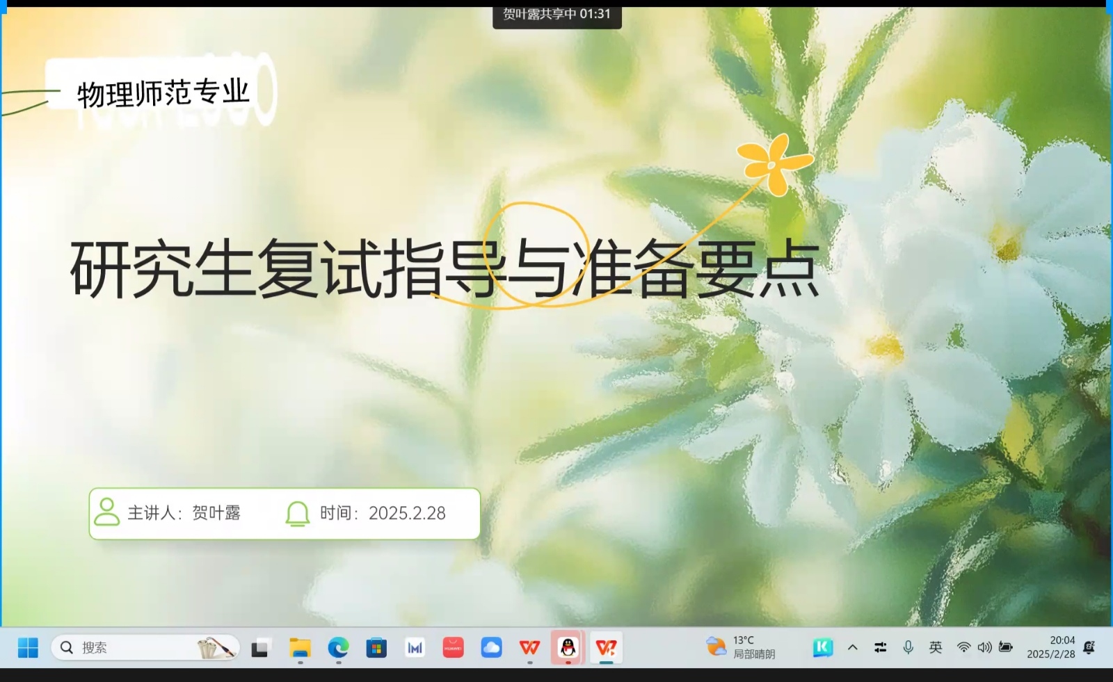 2025年2月27-28日,太阳成tyc7111cc针对2021级考研员工举办了复试指导线上会。公司资深导师陈明君教授、沙爱龙副教授、贺叶露副教授、辅导员周岭老师及进入复试环节的学子共同参与本次指导活动。