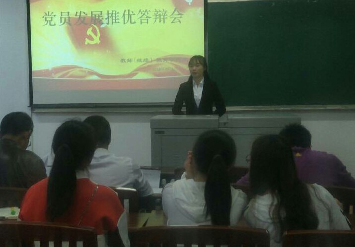 公司党总支为进一步了解员工入党申请人的基本情况,深化“两学一做”学习教育成效,根据《中国共产党章程》和《中国共产党发展党员工作细则》的相关要求,于43日下午14:30在百安坝校区一教314召开了支部推优答辩会。出席会议的有党总支书记潘勇,副书记李中春,员工一支部书记高曼,员工二支部书记张京友/辅导员冯梅以及员工支部全体党员、预备党员、积极分子和部分团员代表。