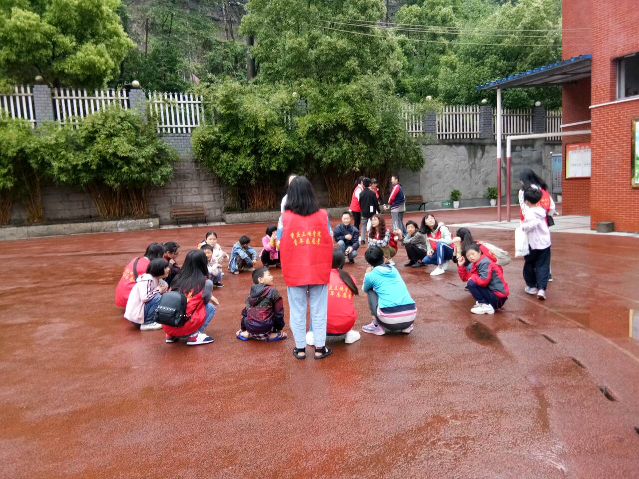 抵达特教中心后,志愿者们穿好志愿者马甲,有秩序地进入了特教中心。活动过程中,志愿者和小朋友们一起玩老鹰捉小鸡、丢手绢、开火车等游戏,随后又一起在食堂做手工,一起捏橡皮泥,一起折纸和一起画画,过程十分融洽。
