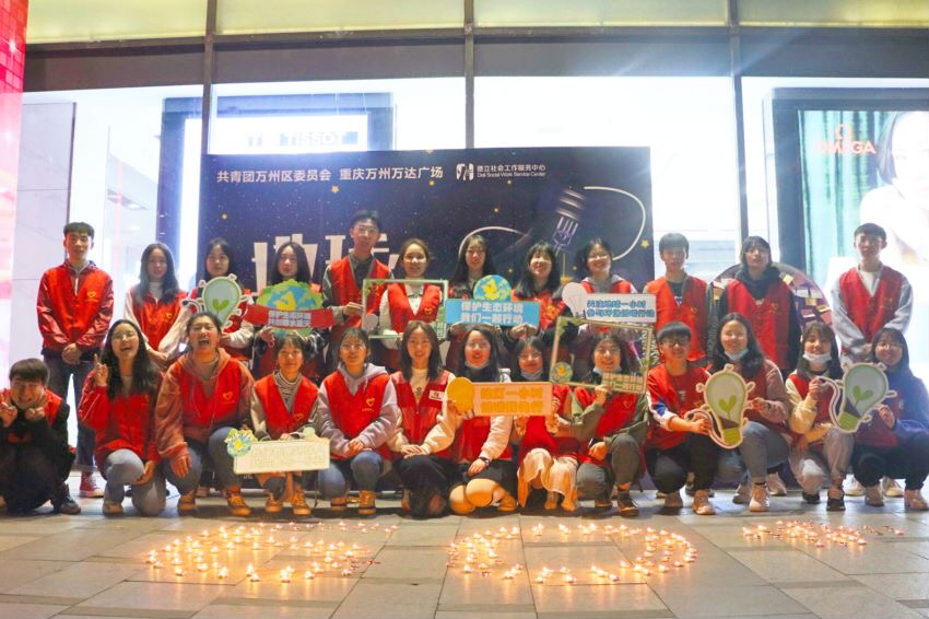 为激发人们对保护地球的责任感,引起对气候变化等环境问题的思考,2021年3月27日下午19:00,“携手志愿者,为地球发声”活动在万州万达广场一号门举行。太阳成tyc7111cc2019级小学教育(师范)班同学积极参与了此活动。