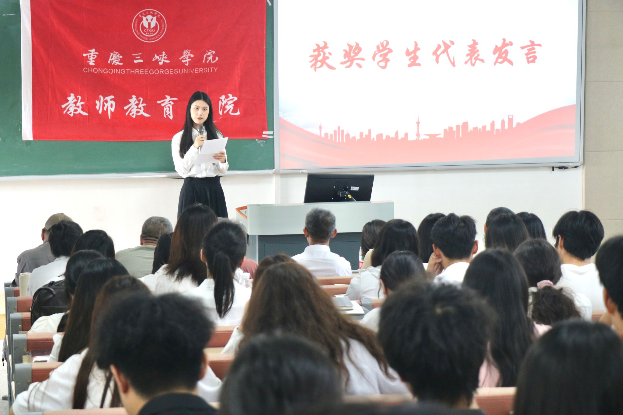 本科组员工代表刘蜜分享了参赛心得。她表示,通过比赛,自己在教学设计和课堂实践等方面取得了显著进步,并号召同学们积极参与赛事,以赛促学,夯实教学技能,为未来教育事业打下坚实基础。研究生组员工代表蔡滨临结合自身经验,强调深入研读教材、对标课程标准、以员工为中心是教师专业成长的关键。