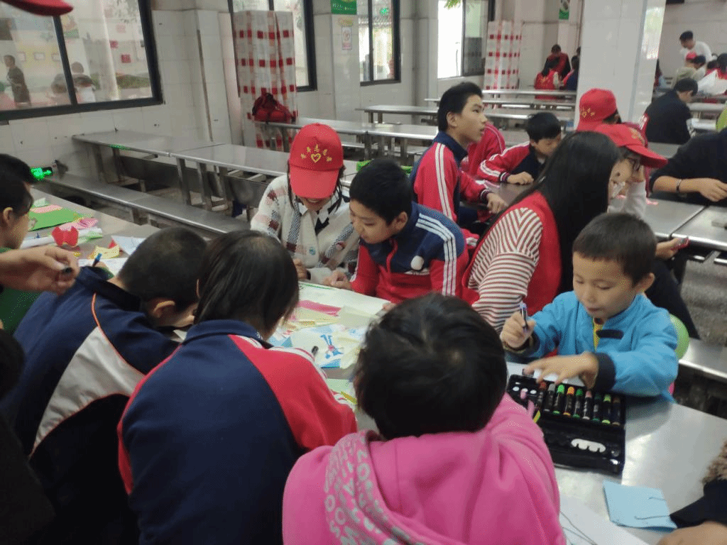 来到特教中心,孩子们便好奇的看着我们,并且热情地拉着志愿者的手,和志愿者们聊天玩游戏。看那小小的操场上,可爱的孩子们乐此不疲地打着篮球,玩着老鹰捉小鸡,开火车,跳兔子舞……在他们的脸上,志愿者们看到了人世间最为朴实纯真的一种笑容,如此美丽!接着志愿者们又带领着孩子们折纸,画画,做手工,折出了一个个可爱的兔子,花篮,灯笼,小狗……孩子们看着自己制作的画,他们满脸是成就感,并温暖地写下了志愿者们的名字作为纪念!