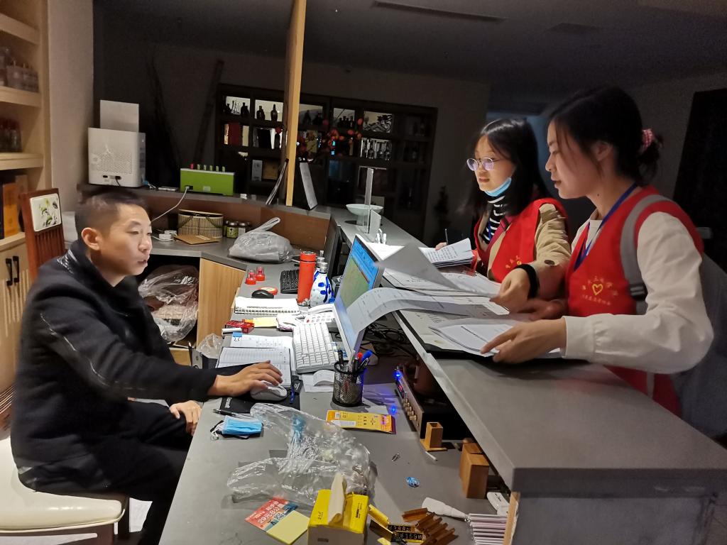 刚到达北滨路丰收社区便民服务中心,志愿者们便穿戴好马甲与帽子,认真听从居委会的工作安排。随后,在居委会工作人员的带领下,志愿者们纷纷走进北滨路段美食街各个餐饮店,发放“吃得文明”倡议书与文明餐厅申报表,并对北滨路美食街创建单位进行申报登记,积极倡导文明健康、绿色环保的生活方式,宣扬吃得文明、吃得安全的餐桌文化。同时,为了呼吁更多的人了解并参与到文明餐桌食品安全活动中来,志愿者们还在各餐饮店里最醒目的位置张贴“吃得文明,从我做起”公益海报,扩大活动影响力与号召力。