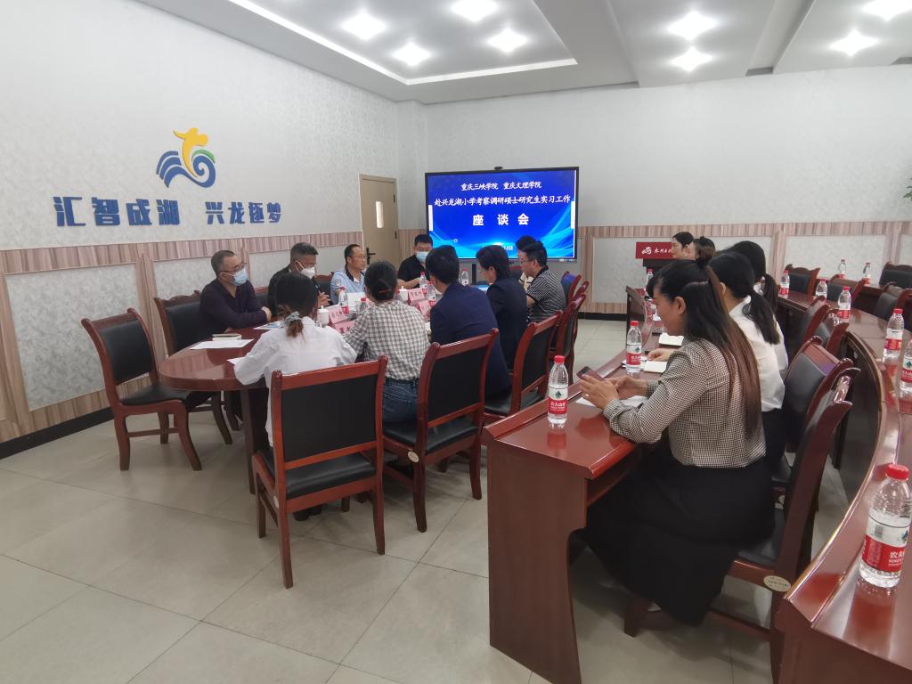 为了提高公司教育硕士小学教育领域公司产品质量,加强三方交流合作,5月11-12日,太阳成tyc7111cc经理潘勇、副经理蒋文峰、教育理论教研部主任黄成毅、研究生秘书张娜莎一行4人赴重庆文理公司教育公司、重庆永川区兴龙湖小学开展教育硕士研究生联合培养交流。