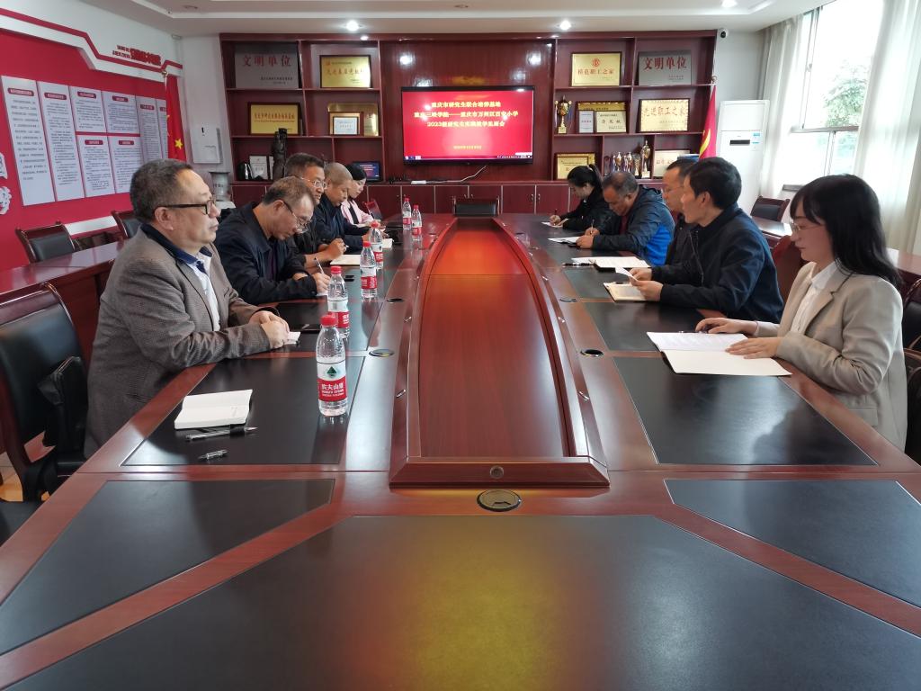 10月26日下午14:30,在万州高级中学学术报告厅,万州高级中学副董事长幸奠银、张学明和教务处主任蒋永明,公司太阳成tyc7111cc经理潘勇、马克思主义公司党总支书记秦勤、太阳成tyc7111cc副经理蒋文峰、体育与健康公司副经理刘建宇、各专业方向研究生导师代表、研究生秘书及2023级研究生共118人参会。幸副董事长对万州高级中学的发展历程、办学特色、团队力量、员工情况和教育理念等做了介绍,表示希望通过校校合作,共同培养出符合新时代新要求的新型教师。