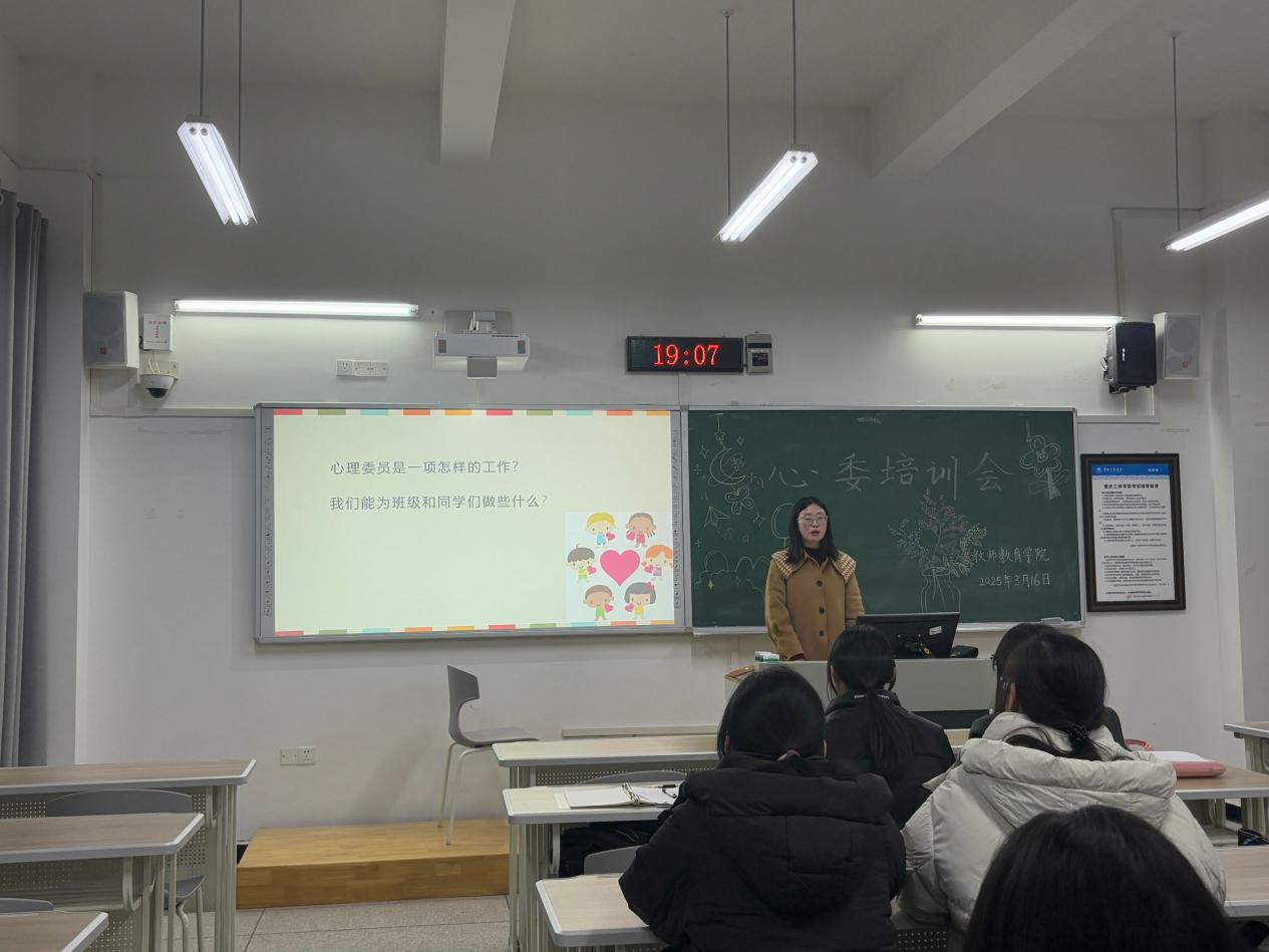 培训内容丰富多样,涵盖了心理委员的角色与职责、心理健康知识科普、沟通与倾听技巧、心理问题的识别与应对等多个方面。冯老师通过生动的案例分析、互动体验以及实践演练等形式,深入浅出地讲解了相关知识和技能,使心理委员们受益匪浅。在培训过程中,冯老师强调了心理委员在班级心理健康教育中的重要作用,要求大家明确自身职责,关注同学的心理状态,及时发现并反馈问题,同时学会保护同学的隐私和自身的心理健康。心理委员们积极参与讨论和互动,分享自己的经验和困惑,现场气氛热烈。培训结束后,心理委员们纷纷表示,通过此次培训,他们对心理健康教育有了更深刻的认识,也掌握了更多实用的技巧和方法。2023级物理学(师范)班的心理委员说:“这次培训让我更加明确了自己作为心理委员的使命,我将努力把所学知识运用到实际工作中,为同学们的心理健康保驾护航。”