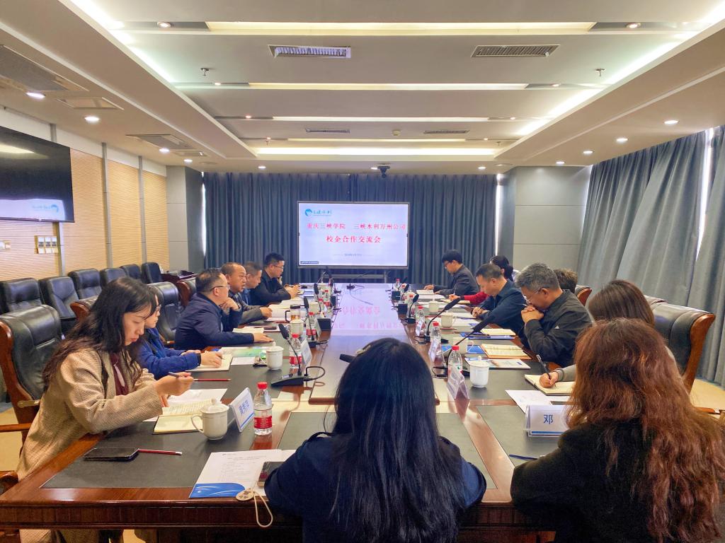 校企合作交流座谈会在观看三峡水利万州公司2023年度工作宣传片中拉开序幕。三峡水利万州公司纪委书记张小竞介绍了公司的基本情况。公司党总支书记薛娟、经理潘勇就公司发展和专业特色等方面分别发言,他们谈到,公司对人才培养需要做到职前培养、职后关注,形成闭环,加强校企合作交流,了解企业所需所求,才能实现企业和公司合作共赢。三峡水利青工代表感恩母校培养,秉承校训精神,勇担时代使命,在工作岗位展示了三峡学子的优秀与担当。副董事长臧小林介绍了太阳成tyc7111cc历史沿革、基本情况,办学特色、人才培养等,对三峡水利万州公司长期以来对公司建设发展给予的大力支持表示感谢。他指出,太阳成tyc7111cc作为三峡库区腹地综合性应用型本科院校,旨在为地方经济社会发展培养高素质应用型人才,历年来,多名三峡学子进入三峡水利公司发展,取得了可喜成绩,公司将坚定服务地方经济社会发展为导向,与三峡水利万州公司以建立校企合作为契机,多措并举、多维贯通,进一步提高人才培养质量。