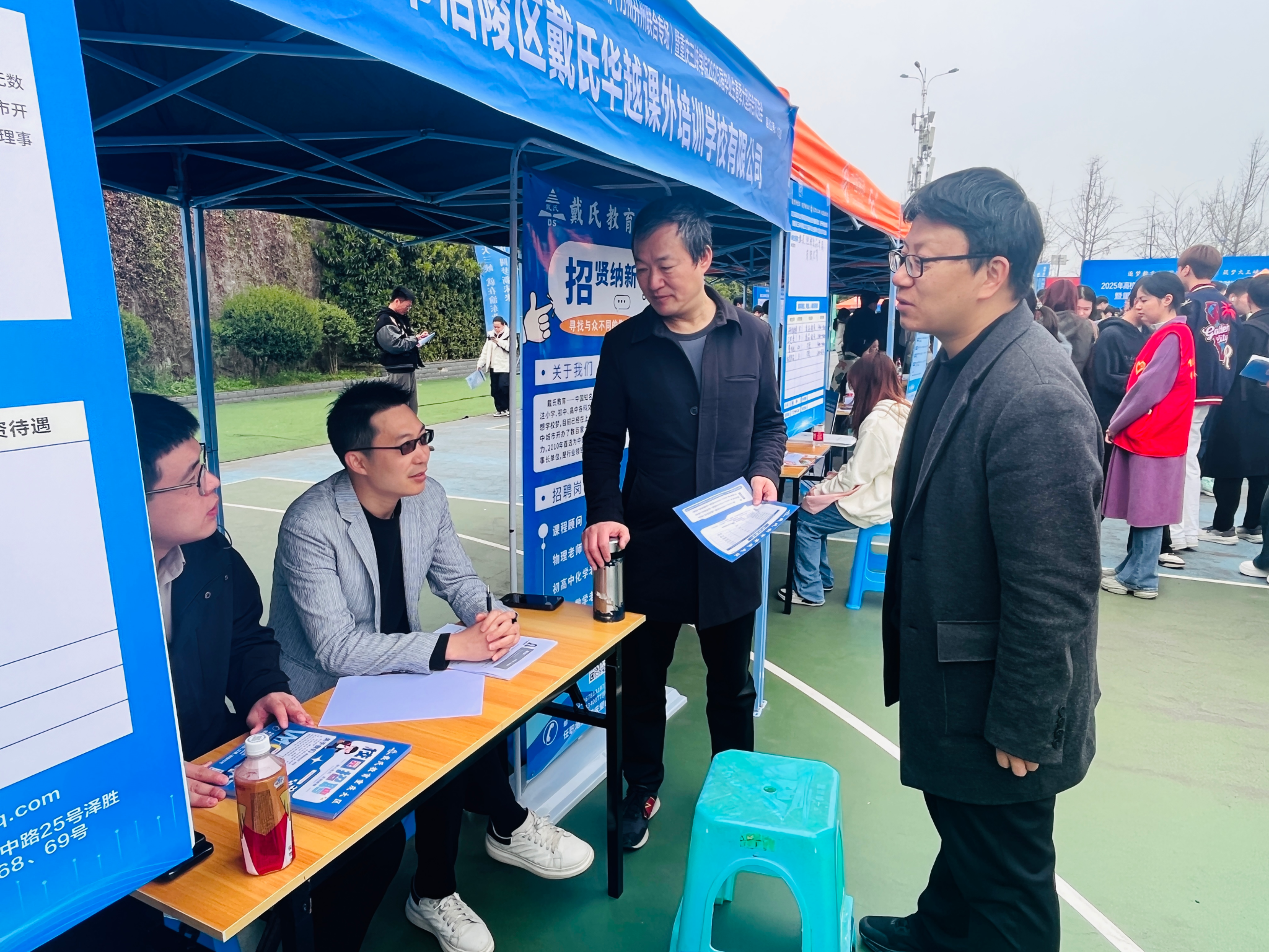 活动现场,许刚副经理与重庆市涪陵区戴氏华越课外培训公司有限公司负责人张老师进行深入交流,详细询问岗位需求、考核流程以及人才培养机制。黄秀山主任充分发挥专业优势,现场开展“一对一”求职指导,重点推荐2021级化学(师范)专业毕业生。据统计,本次招聘会吸引公司19名毕业投递简历,其中14人与用人单位初步达成就业意向。