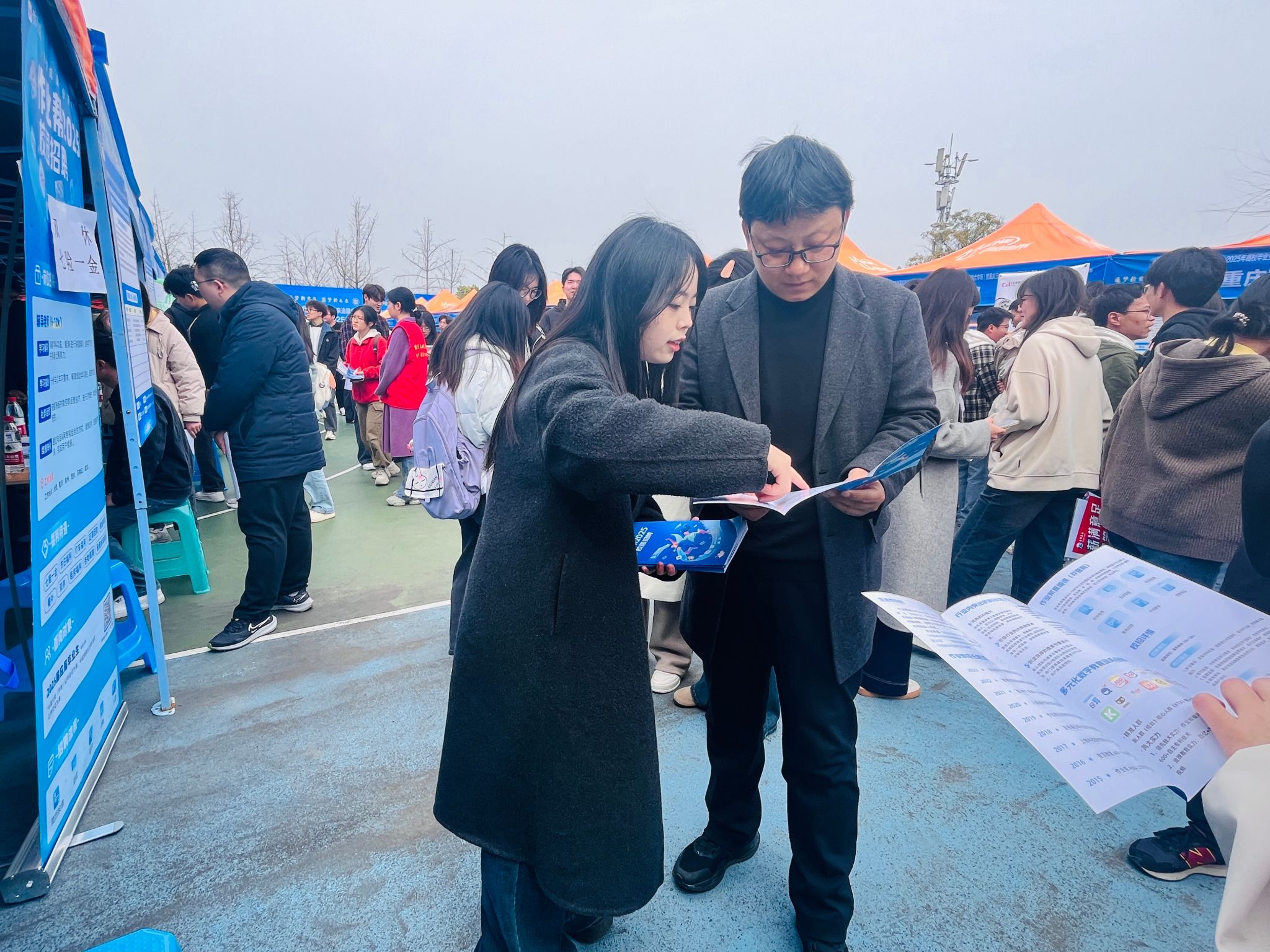 在湖北省仙桃荣怀公司展位前,许刚副经理与招聘负责人李世刚深入交流,详细了解该校校史沿革、办学特色及岗位发展规划,重点探讨师范生培养与基础教育需求的衔接路径。许刚副经理鼓励现场参加招聘的2021级生物科学(师范)专业员工要勇于交流,展现自身优势,同时对简历投递、笔试、面试等事项进行了叮嘱和强调。据统计,有12名毕业生通过现场考核进入复试环节,最终8人进入签约环节。