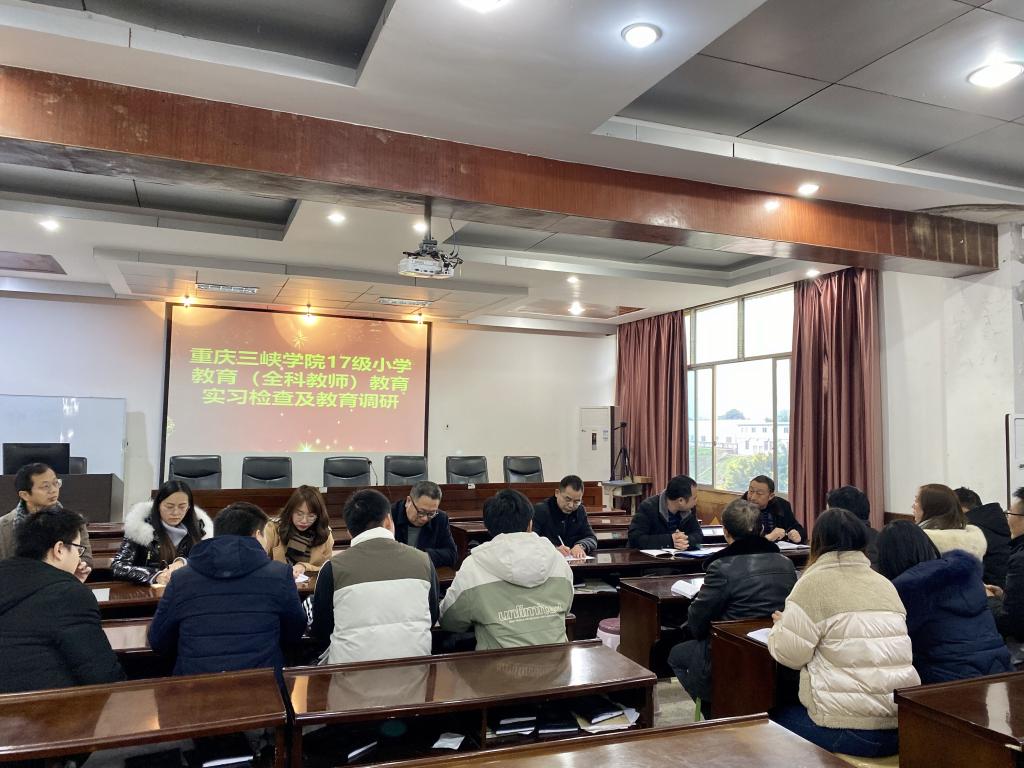 2021年1月6日—7日,公司党总支副书记李中春率领基础教育系罗孟祥主任、周国庆老师、魏艳春老师、鞠小勤老师、邓峥嵘老师在云阳县教委人事科黄科长的陪同下,就公司2017级小学教育专业实习生在云阳县部分小学的实习情况进行了检查、调研。