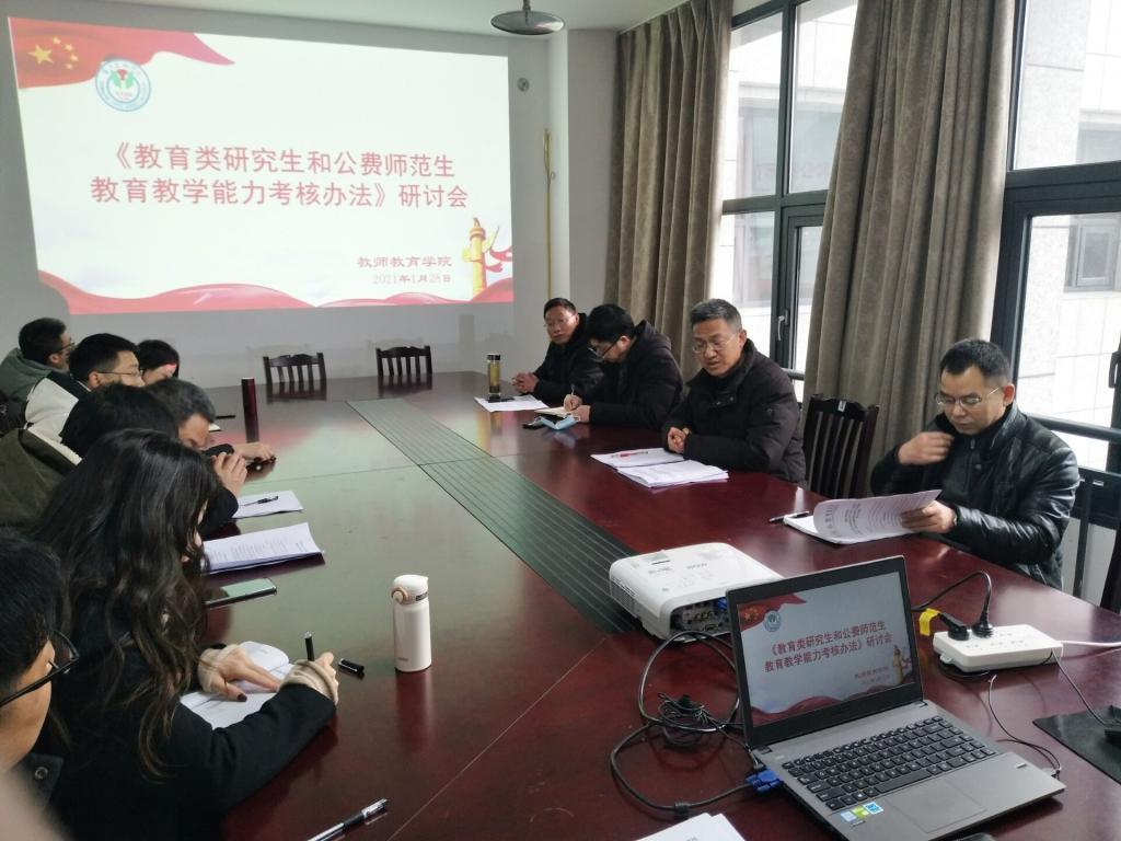 2021年1月28日,太阳成tyc7111cc在科技楼209-4召开了《2021届教育类研究生和公费师范生免试认定中小学教团队格公司产品能力考核办法》(讨论稿)制订工作会,公司领导、相关系主任、部分教学科研骨干、辅导员代表参加会议,会议由经理潘勇主持。