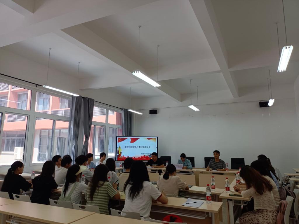 统战委员黄成毅介绍了召开座谈会的意义,号召全体参会同学以热爱家乡为出发点,筑牢中华民族共同体意识,积极回馈家乡,守好对家乡、对本民族的眷恋之情,用扎根一线教育基层、踏实工作来回馈祖国对少数民族地区的帮扶和照顾。