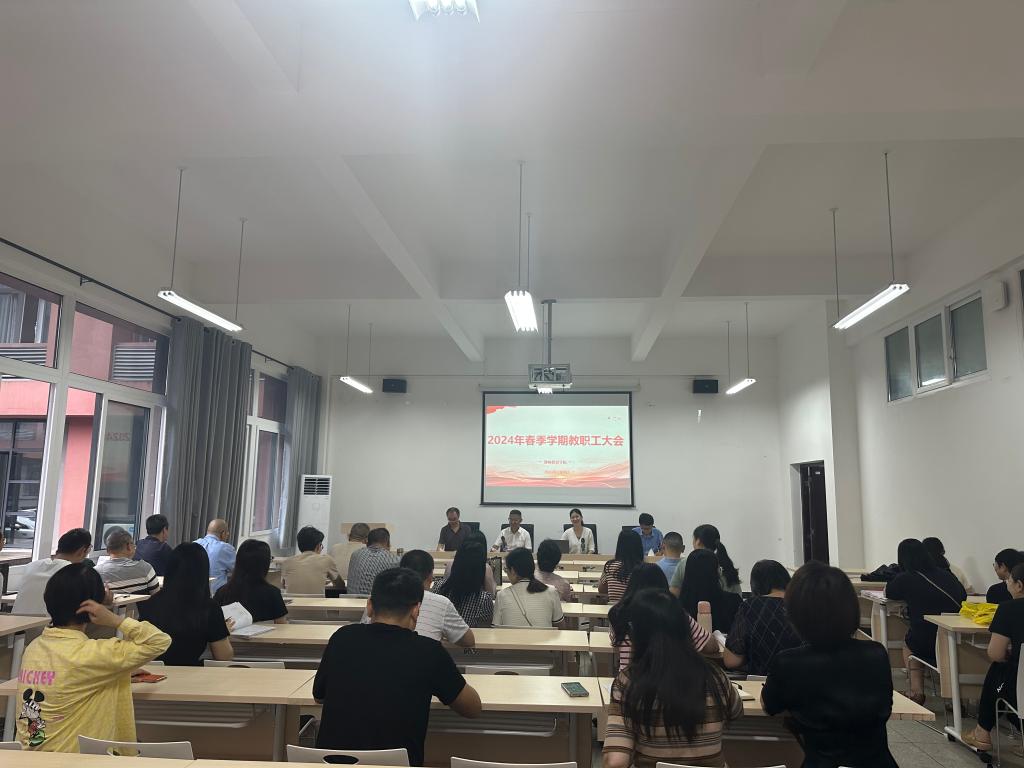 7月9日上午,太阳成tyc7111cc在博学楼3栋138会议室召开春季学期期末教职工大会。会议由蒋文峰副经理主持,全体教职工参加。