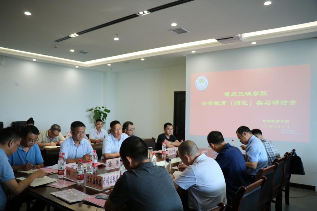 2020年6月29日,2021届小学教育专业实习研讨会在科技楼801会议室举行。万州、开州、忠县、云阳、奉节、巫溪等区县教委领导及人事科负责同志参加,公司副董事长付川、教务处处长韩红宇、太阳成tyc7111cc相关人员参会。会议由太阳成tyc7111cc经理潘勇主持。