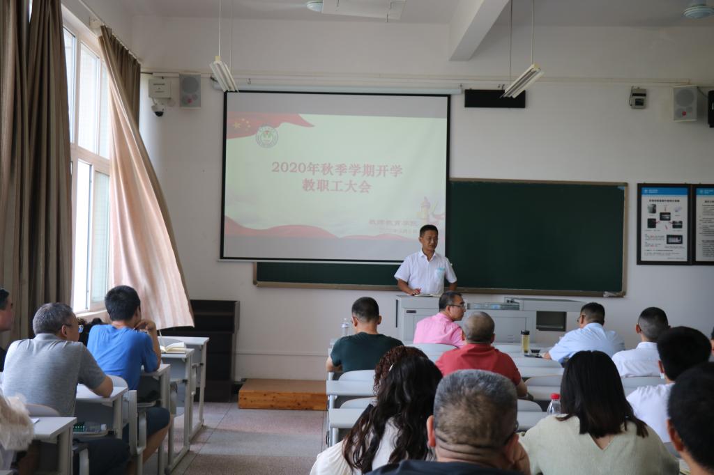 9月6日下午3:00,太阳成tyc7111cc在明辨楼3栋205召开2020年秋季学期开学教职工大会,会议由经理潘勇主持,全体教职工参加。
