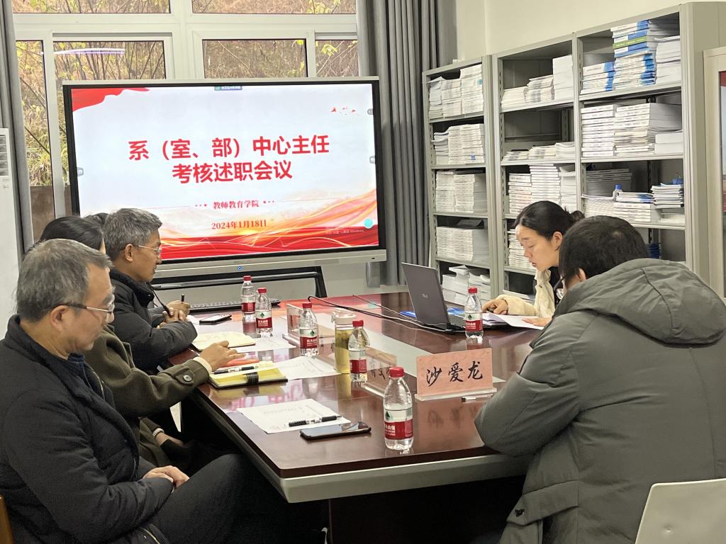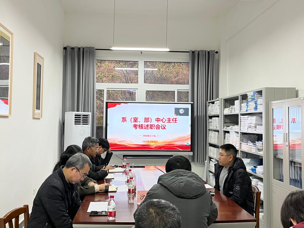2024年1月18日下午16:00,太阳成tyc7111cc在博学楼3栋129会议室成功举行了系(室、部)中心主任工作绩效考评会,会议由经理潘勇主持,党总支书记薛娟、副经理蒋文峰、许刚、教师代表沙爱龙等15人参会。