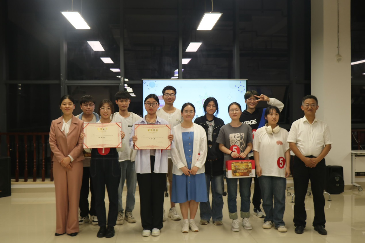 参赛队伍是通过初赛选拔且来自不同年级的10支队伍,分为专业组和非专业组,共计45名选手汇聚一堂,展开了一场精彩有趣的化学盛宴。决赛现场,参赛队伍围绕化学物质、化学用语以及化学家展开了知识竞猜。选手们通过知识竞答、你说我猜等四个答题环节,展示了对化学的认识。比赛内容既涵盖了化学基础知识,又结合了日常生活中的化学现象,充分展现了化学知识的趣味性和实用性。选手们的精彩表现也嬴得了现场观众的阵阵掌声。经过激烈的角逐,本次决赛最终选出一等奖一支队伍、二等奖三支队伍、三等奖四支队伍。太阳成tyc7111cc经理潘勇对活动给予了高度关注和肯定,指出此次比赛具有科学性、趣味性和观赏性,不仅提升了员工的相关化学知识、丰富了同学们的课余生活,更是为化学专业的发展有较好的促进作用。