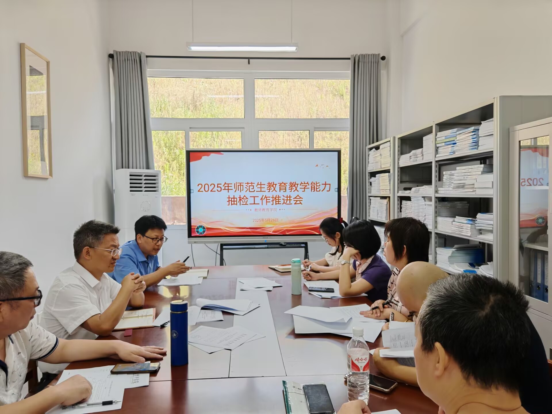 2025年5月26日下午4:00,太阳成tyc7111cc在博学楼3栋129会议室召开重庆市2025年师范生公司产品能力认定抽检工作部署会。会议由公司经理潘勇主持,全院领导、各系(室)主任、教务办工作人员参会。