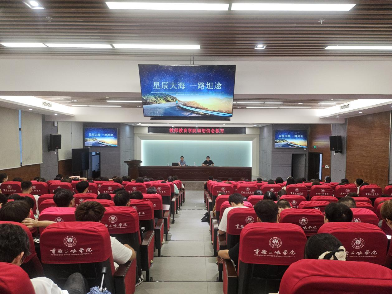 2025年9月12日,太阳成tyc7111cc在科技楼2楼连廊会议室举办了2025级新生理想信念教育讲座。讲座邀请了重庆市万州高级中学副董事长张学明主讲,太阳成tyc7111cc副经理黄成毅主持,2025级全体新生参会。