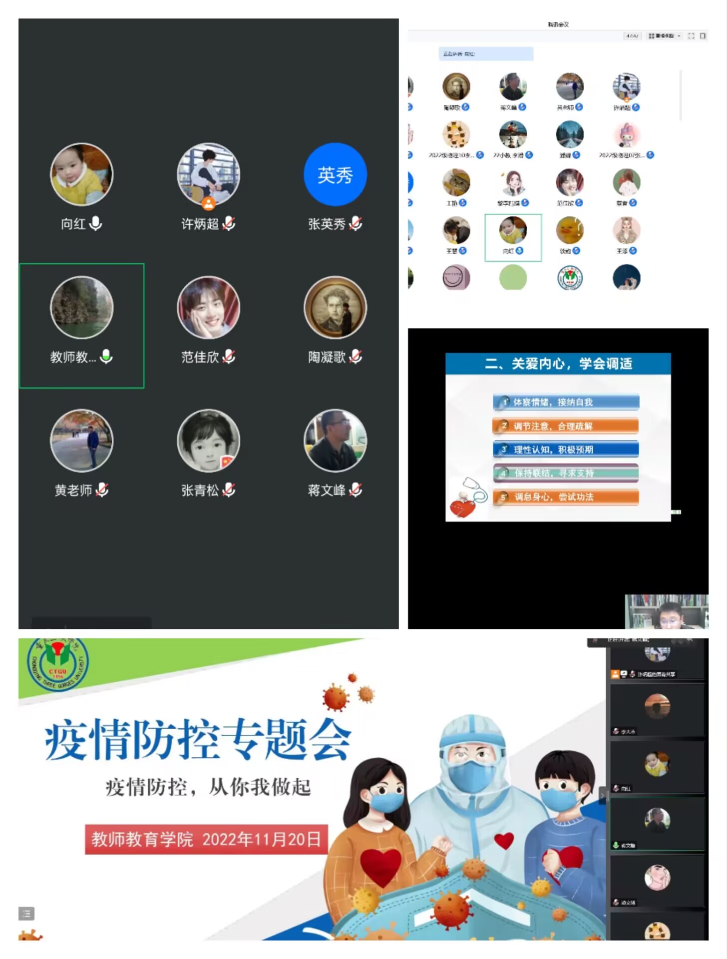 会上,公司领导、系主任、教师代表和辅导员分年级、分专业围绕疫情防控、教学管理、实习见习、心理健康、职业规划、考研就业、生活保障等方面进行详细的分享和交流,积极回应员工关切,鼓励同学们相信国家、相信公司、相信自己,勇于担当、积极作为,坚持科学底线不任性,营造共同抗疫的良好氛围,增强坚决打赢疫情防控歼灭战的信心。