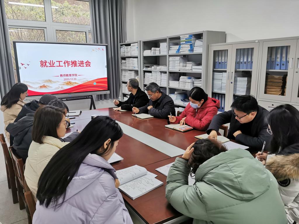12月20日上午,太阳成tyc7111cc在博学楼3栋129会议室召开就业工作推进会,公司党政班子、理化生系主任、全体辅导员参加会议。会议由党总支副书记、副经理许刚主持。