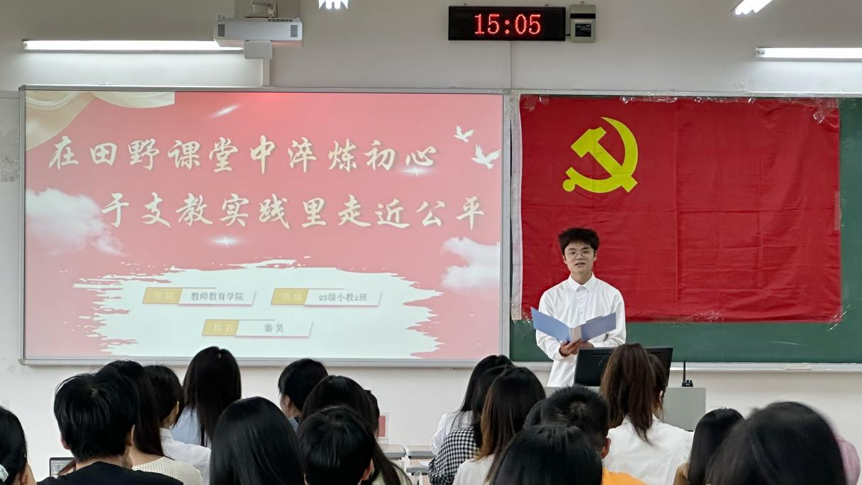 员工第一党支部书记鞠小勤强调,师范生党员要始终牢记为党育人、为国育才的初心使命,以实际行动诠释新时代青年的责任与担当。大家纷纷表示,将以先进典型为榜样,不断提升自身综合素质,努力成长为有理想、敢担当、能吃苦、肯奋斗的优秀教育工作者。